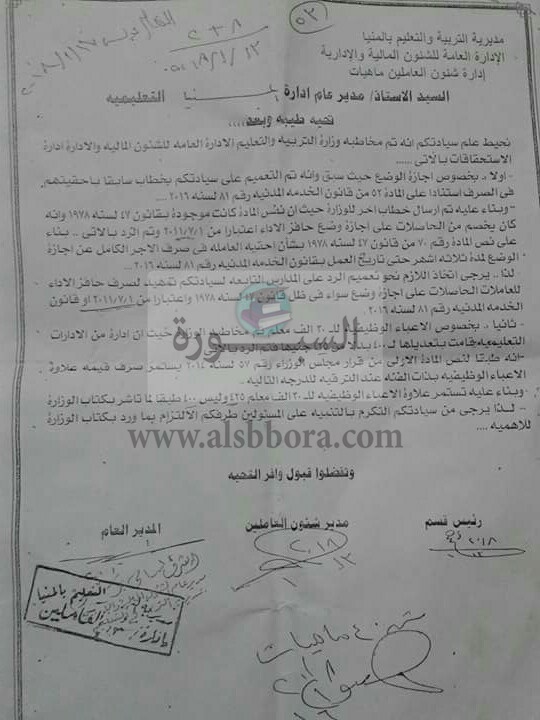 عاجل وهام.. ننشر فاكس رد حافز الآداء اعتبارا من أول يوليو 2011