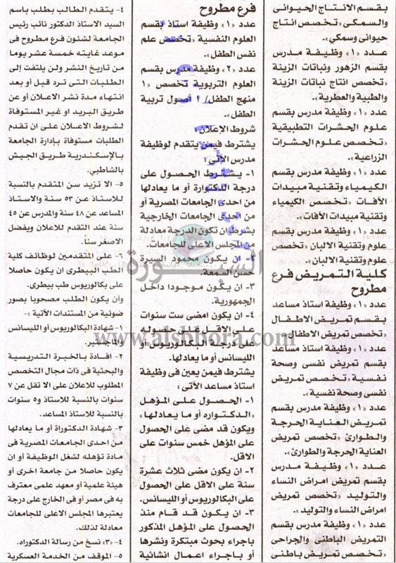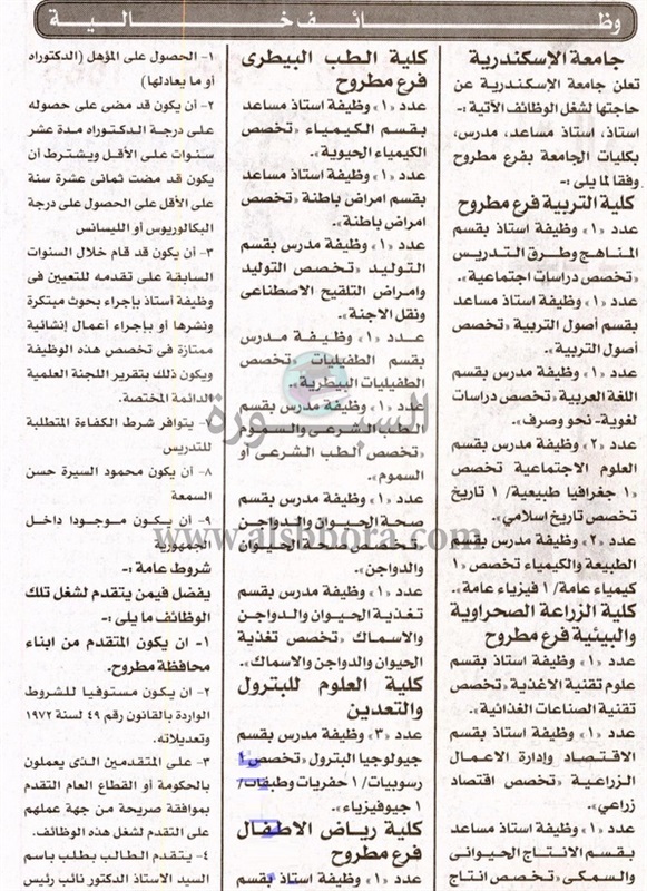 تعلن جامعة الإسكندرية،عن وظائف جديدة لأعضاء هيئة التدريس ،"من حملة الماجستير والدكتوراه"، وذلك وفقا لنص الإعلان التالي:-