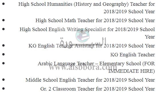 تعلن مدرسة البيان ثنائية اللغة بدولة الكويت عن حاجتها لشغل وظائف موظفين للعام الدراسى 2018 / 2019 وفقا للاعلان الرسمى على موقعها الالكترونى ويكون التقديم للوظائف على الانترنت وفقا للوظائف.