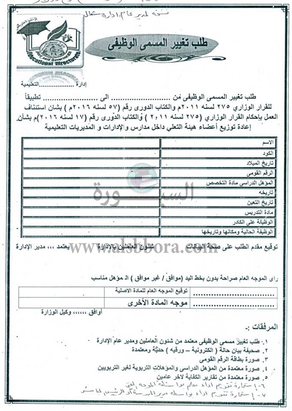 ينشر موقع السبورة الموعد النهائى لتقدم المعلمين بشأن تغيير المسمى الوظيفى للمعلمين والتى تبدأ من أول يناير الى 31 مارس من كل عام.