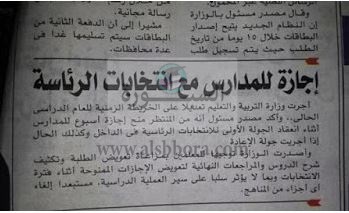 في إطار الاستحقاقات الدستورية المقبلة والمتمثلة في الانتخابات الرئاسية أعلنت وزارة التربية والتعليم عن إجراء تعديلا في الخريطة الزمنية للعام الدراسي الحالي.