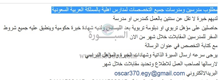 تعلن عدد من المدارس بالسعودية تعلن عن وظائف جديدة للمعلمين والمعلمات في جميع المواد وذلك وفقا لنص الإعلان التالي