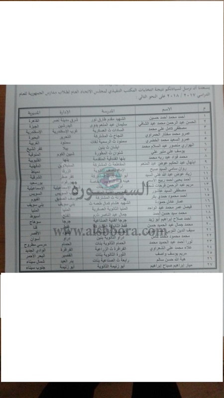 وفى نهاية عمليات الفرز تم الإعلان عن الطلاب الفائزين في انتخابات المكتب التنفيذي لمجلس الاتحاد العام لطلاب مدارس الجمهورية.