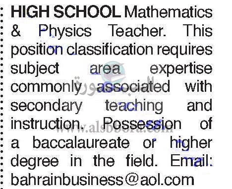 تعلن مدرسة خاصة في البحرين عن وظائف جديدة للمعلمين والمعلمات وذلك وفقا لنص الإعلان التالي:-