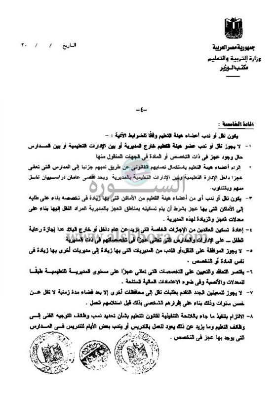 بالمستندات| التعليم: يمكن ندب أو نقل المعلمين للمدارس وفقا لهذة الضوابط.. ننشر التفاصيل