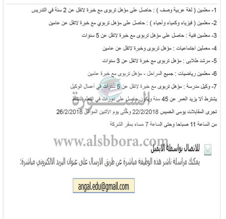 تعلن مدرسة خاصة في المملكة العربية السعودية عن وظائف جديدة للمعلمين والمعلمات في 7 تخصصات وذلك وفقا لنص الإعلان التالي:-