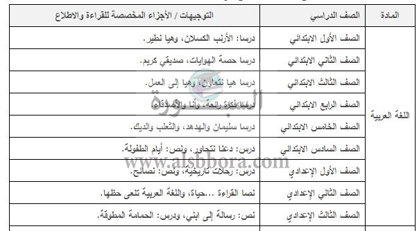 ينشر موقع السبورة الأجزاء المخصصة للقراءة والاطلاع للغة العربية من الصف الأول الابتدائى الى الثالث الاعدادى للترم الثانى من العام الدراسى 2018/2017، والتى أعلنتها وزارة التربية والتعليم والتعليم الفنى.