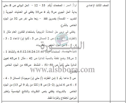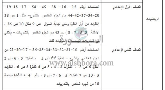 ينشر موقع السبورة الأجزاء المخصصة للقراءة والاطلاع لمادة الرياضيات من الصف الأول الابتدائى الى الثالث الاعدادى للترم الثانى من العام الدراسى 2018/2017، والتى أعلنتها وزارة التربية والتعليم والتعليم الفنى.