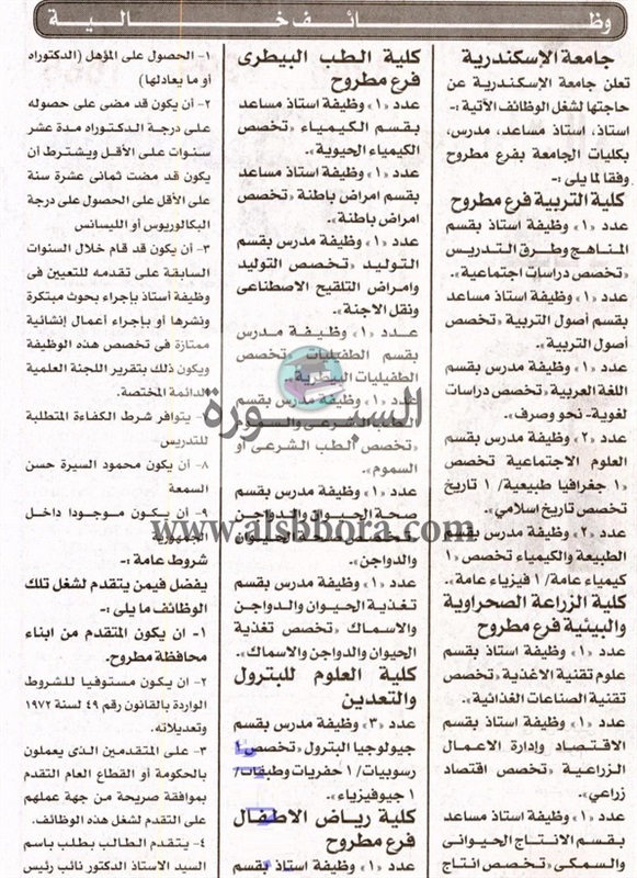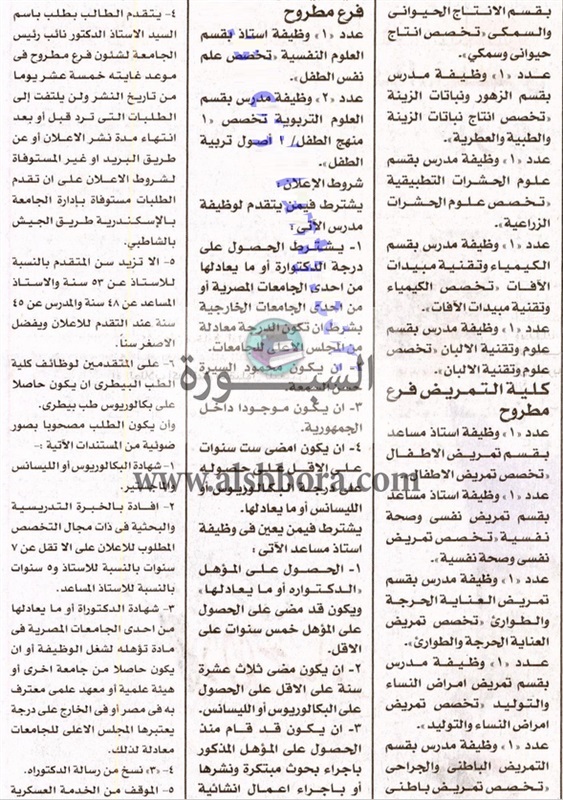 تعلن جامعة الإسكندرية عن أكبر مسابقة لتعيين أعضاء هيئة التدريس في 7 كليات"من معيد إلي أستاذ" وذلك وفقا لنص الإعلان التالي: