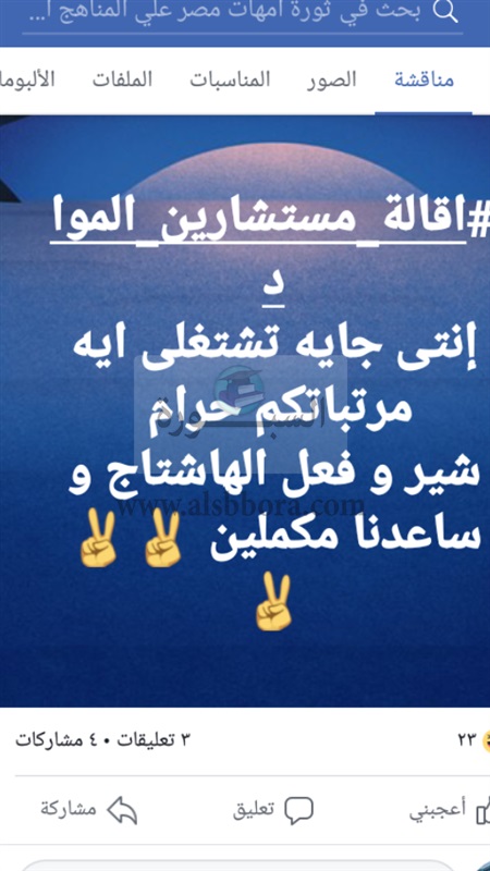 دشن جروب "ثورة امهات مصر" حملة جديدة عبر موقع التواصل الاجتماعي "فيس بوك" بعنوان "إقالة مستشارين المواد".