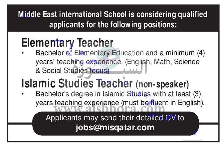 تعلن مدرسة خاصة في دولة قطر عن وظائف جديدة للمعلمين والمعلمات في 5 مواد وذلك وفقا لنص الإعلان التالي:-