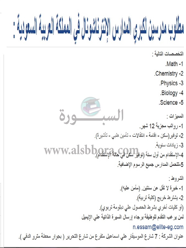تعلن مدرسة خاصة في السعودية عن وظائف جديدة للمعلمين والمعلمات وذلك وفقا لنص الإعلان التالي:-