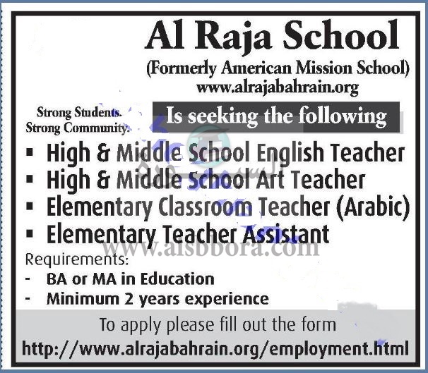 تعلن مدارس الرجاء البحرينية عن وظائف جديدة للمعلمين والمعلمات وذلك وفقا لنص الإعلان التالي:-