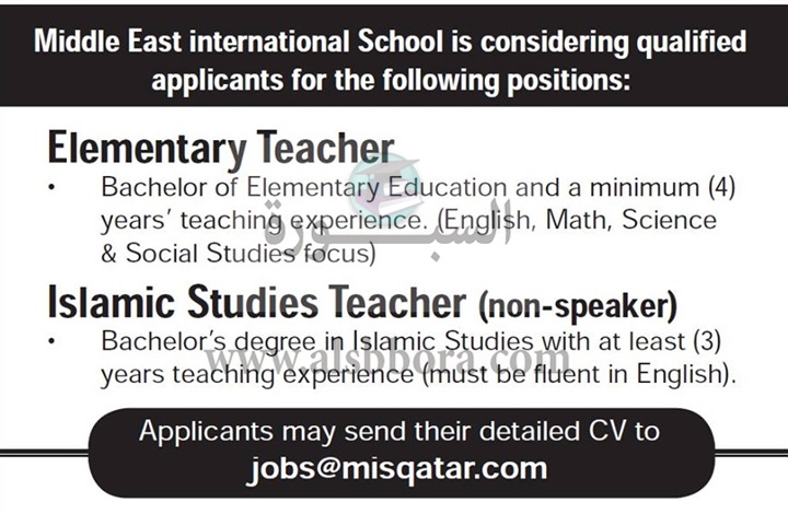 تعلن مدارس الشرق الأوسط القطرية عن وظائف جديدة للمعلمين والمعلمات وذلك وفقا لنص الإعلان التالي:-