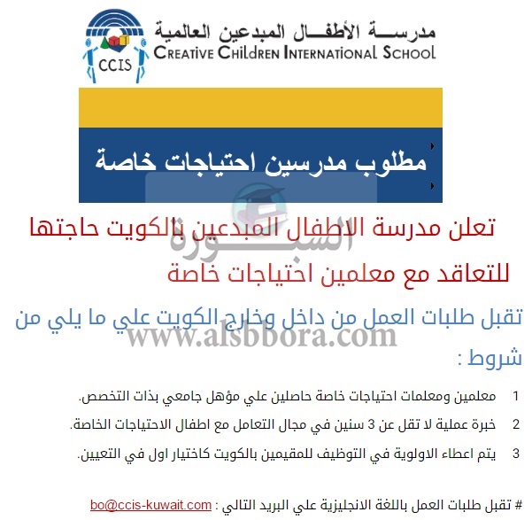 تعلن مدرسة خاصة في دولة الكويت عن وظائف جديدة للمعلمين والمعلمات وذلك وفقا لنص الإعلان التالي:-