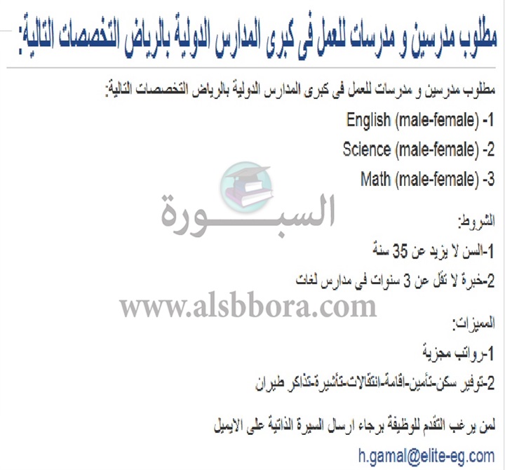 تعلن مدرسة خاصة في المملكة العربية السعودية عن وظائف جديدة للمعلمين والمعلمات وذلك وفقا لنص الإعلان التالي:-
