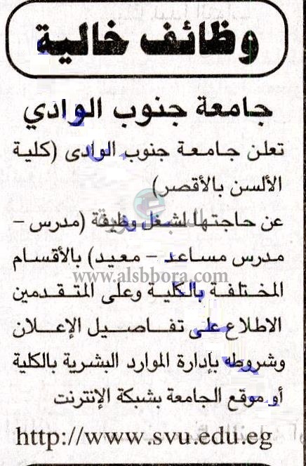 أعلنت جامعة جنوب الوادي عن وظائف جديدة لأعضاء هيئة التدريس"من معيد إلي أستاذ" علما بأن غدا أخر موعد للتقديم وذلك وفقا لنص الإعلان التالي:-