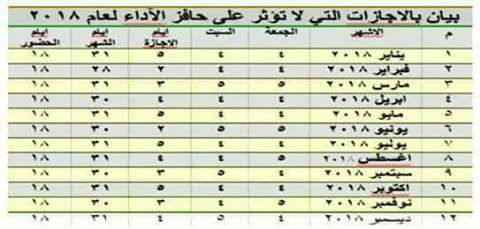 ينشر موقع السبورة بيان اجازات المعلمين التى لا تؤثر على صرف حافز الآداء، من أول يناير الى آخر ديسمبر 2018، حيث جاء البيان كالتالى: