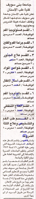 تعلن جامعة بني سويف عن مسابقة لتعيين أعضاء هيئة التدريس في 8 تخصص "من معيد إلي أستاذ" وفقا لنص الإعلان التالي: