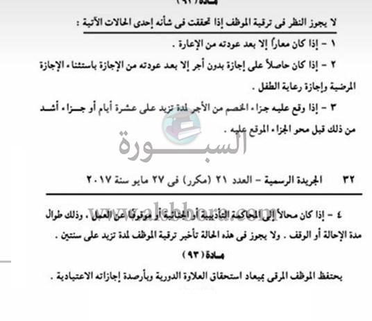 ينشر موقع السبورة أهم 3 شروط تحرم المعلمين والموظفين بالدولة من الترقية والتى جاءت حسب القانون كالتالى: