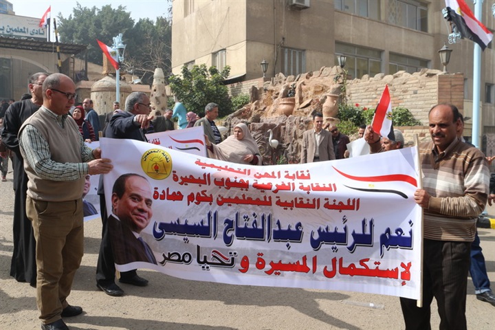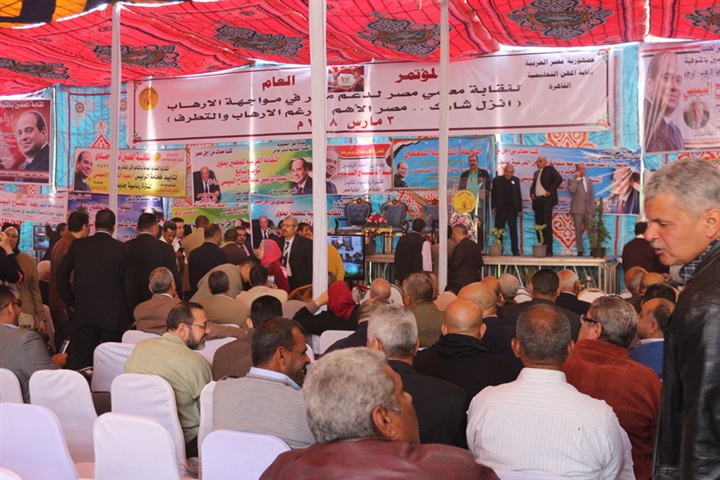 بدء توافد المعلمين من جميع مراكز محافظات الجمهورية، للمشاركة في مؤتمر "أنزل شارك.. مصر الأهم.. رغم التطرف والإرهاب"، إستعداداً لإنطلاق فعاليات المؤتمر بعد قليل، بمقر النقابة العامة للمهن التعليمية بالجزيرة؛ وذلك لتأييد ترشح الرئيس عبد الفتاح السيسي لفترة رئاسية ثانية.