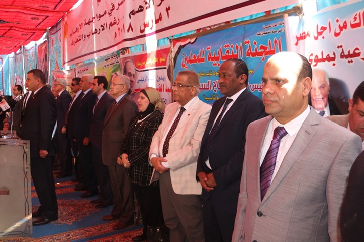بدأت منذ قليل فعاليات مؤتمر "أنزل شارك.. مصر الأهم.. رغم التطرف والأرهاب"، والذي تنظمه نقابة المهن التعليمية برئاسة خلف الزناتي نقيب المعلمين ورئيس اتحاد المعلمين بمقر النقابة العامة بالجزيرة؛ وذلك لتأييد ترشح الرئيس عبدالفتاح السيسي لفترة رئاسية ثانية، بحضور حشود من المعلمين من مراكز محافظات مصر كافة.