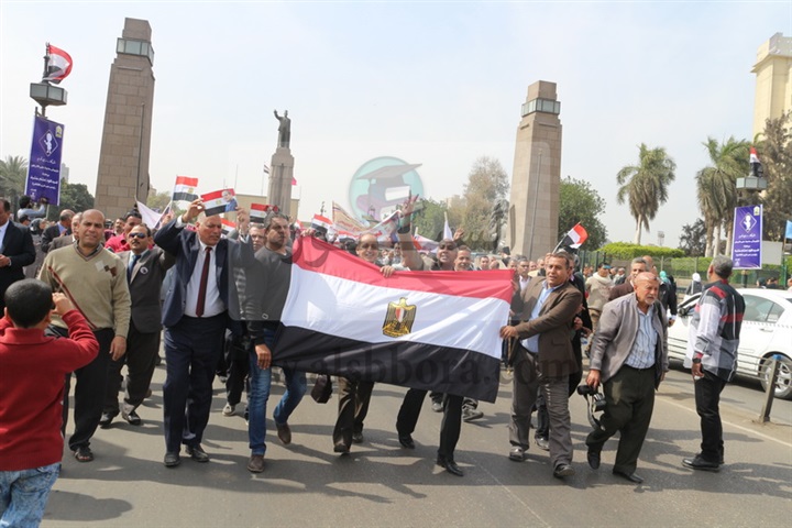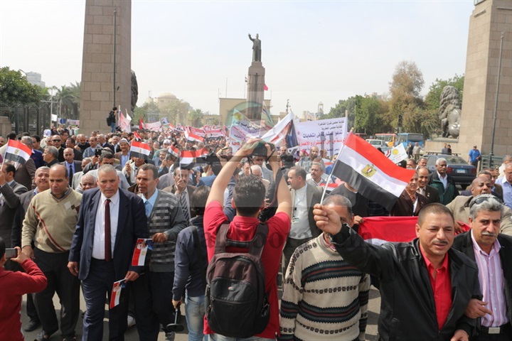 أطلقت نقابة المهن التعليمية برئاسة خلف الزناتي نقيب المعلمين ورئيس اتحاد المعلمين العرب، مسيرة بطول كوبري قصر النيل، لدعم الرئيس عبد الفتاح السيسي لفترة رئاسية ثانية ، وذلك عقب إنتهاء فعاليات مؤتمر "أنزل شارك.. مصر الاهم.. رغم التطرف والإرهاب "، الذي نظمته النقابة اليوم السبت.