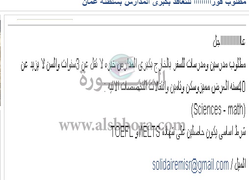تعلن مدرسة خاصة في سلطنة عمان عن وظائف جديدة للمعلمين والمعلمات وذلك وفقا لنص الإعلان التالي:-