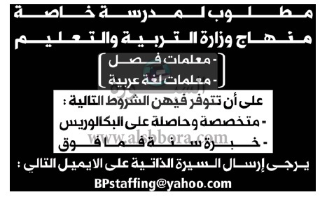 تعلن مدرسة خاصة في أبو ظبي الإماراتية تعلن عن وظائف جديدة للمعلمين والمعلمات وذلك وفقا لنص الإعلان التالي