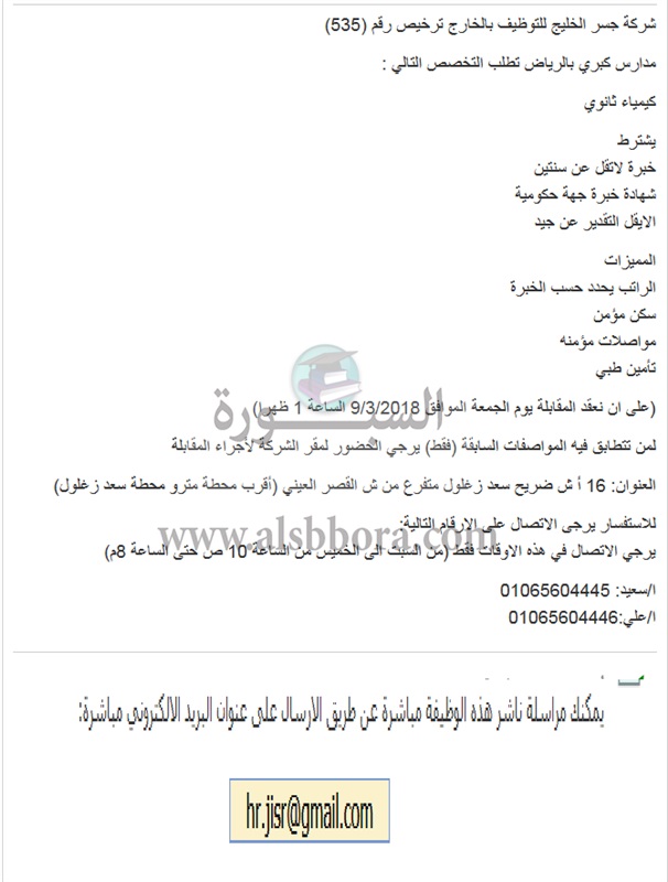تعلن مدرسة خاصة في المملكة العربية السعودية عن وظائف جديدة للمعلمين والمعلمات وذلك وفقا لنص الاعلان التالي:-