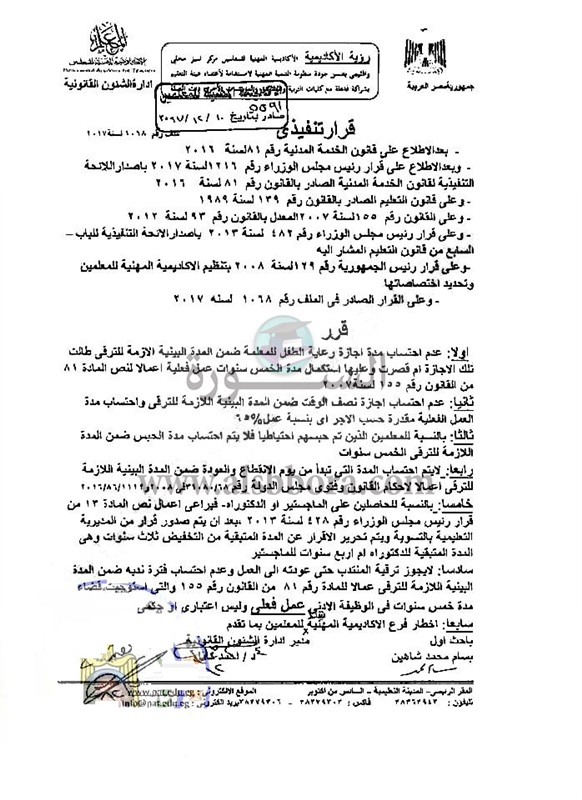 تنشر"السبورة" قرارا تنفيذيا هاما للأكاديمية المهنية للمعلمين بشأن الترقيات وذلك وفقا لنص القرارالتالي: