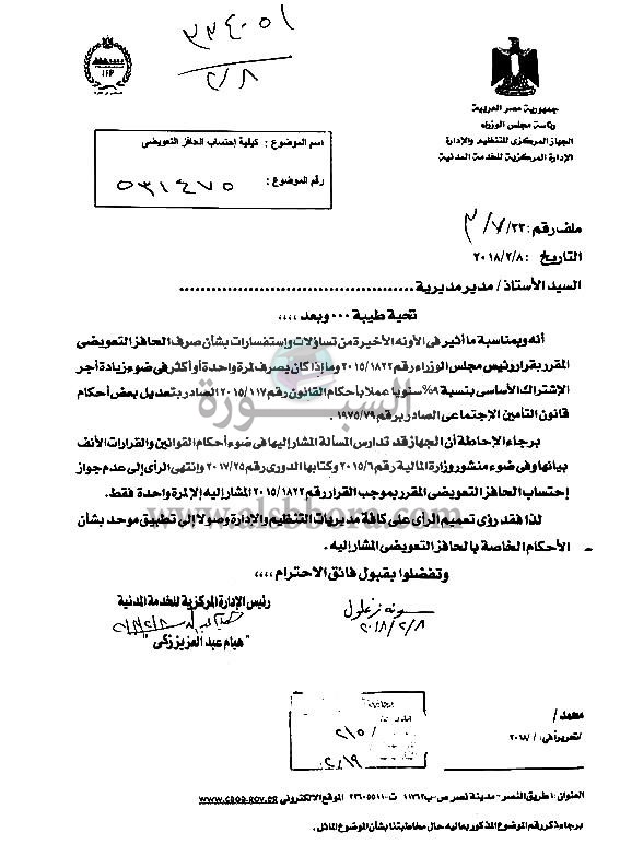 تنشر "السبورة" قرارا وزاريا هاما لمجلس الوزراء بشأن صرف هذة الحوافز لجميع العاملين بالدولة وإليكم نص القرار:-