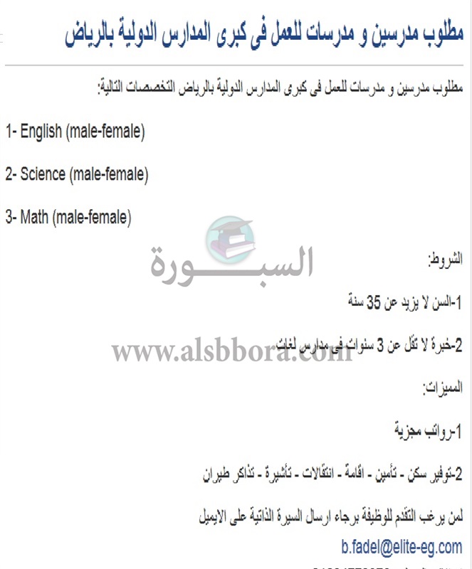 تعلن كبري المدارس البحرينية عن وظائف جديدة للمعلمين والمعلمات في مختلف المواد وذلك وفقا لنص الإعلان التالي:-