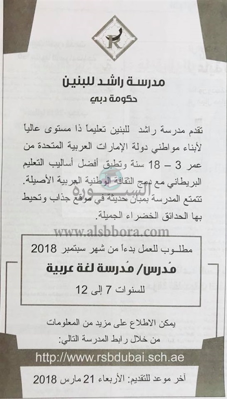تعلن مدارس راشد الإماراتية عن وظائف جديدة للمعلمين والمعلمات وذلك وفقا لنص الإعلان التالي:-