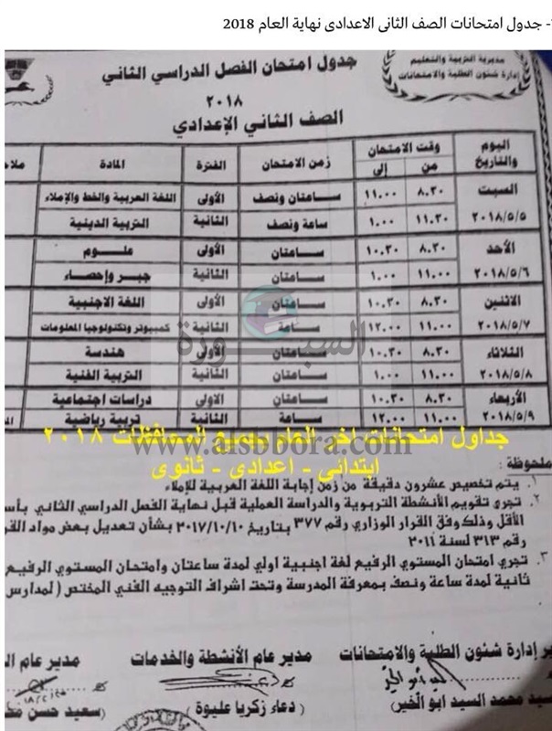 ننشر جدول امتحانات آخر العام لجميع المراحل التعليمية