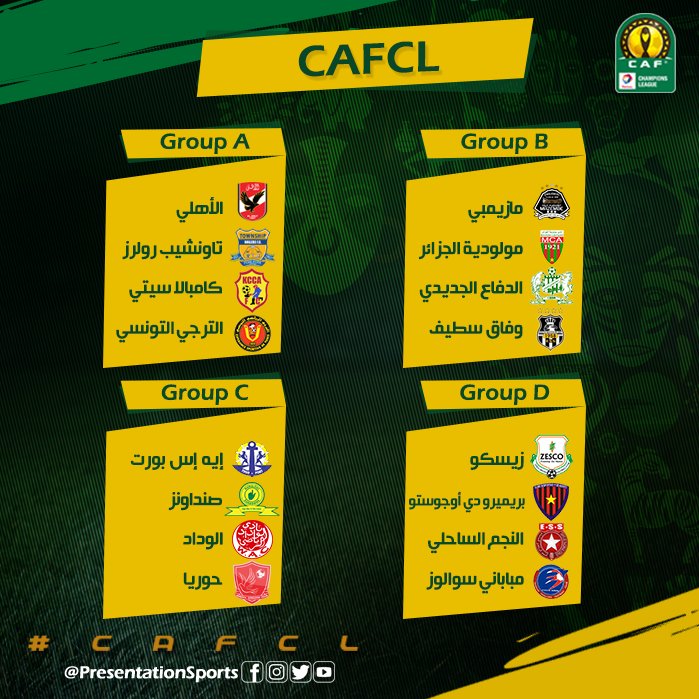 المجموعة الأولى: الأهلي ،توانشيب رولرز (بوتسوانا)، كامبالا سيتي (أوغندا)، الترجي (تونس).