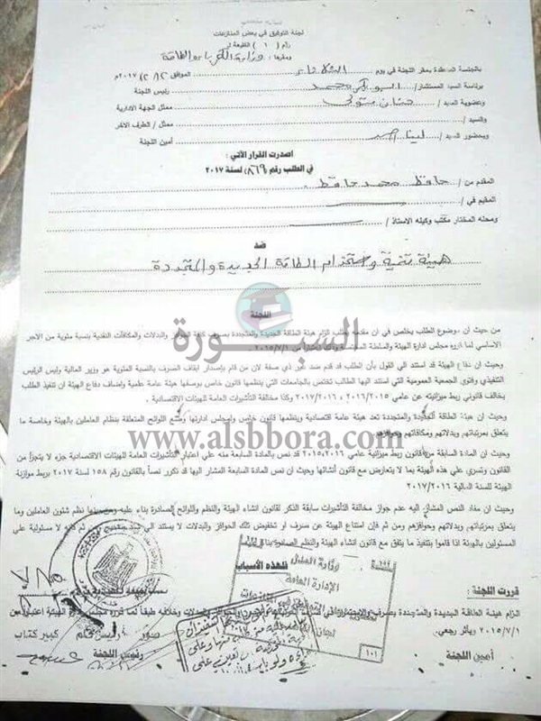 تنشر "السبورة" نص القرار الخاص بصرف جميع الحوافز والبدلات للعاملين بهيئة الطاقة الجديدة والمتجددة على اساس 1-7-2015 وليس 2014