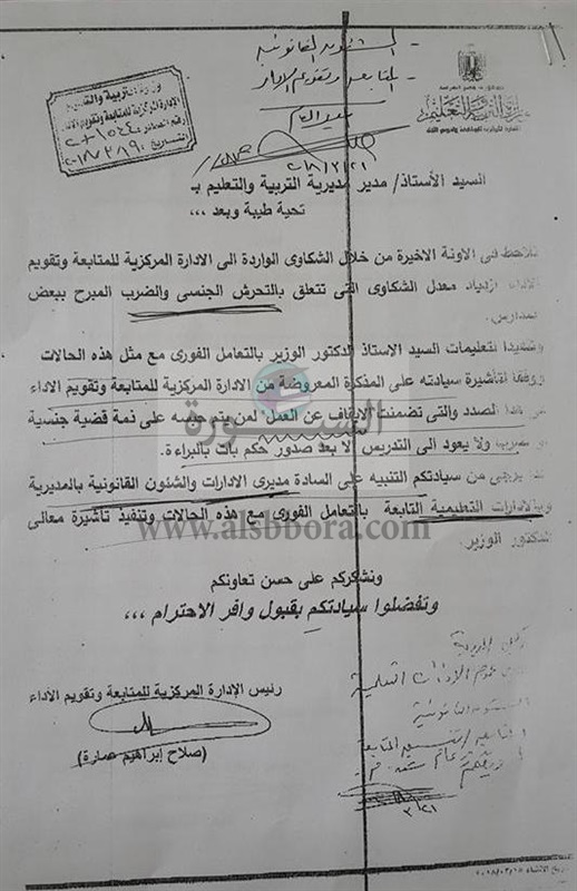 بالمستندات| «التعليم»: استبعاد المعلمين المتهمين بالتحرش الجنسى من التدريس