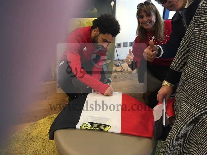 وقام محمد صلاح بالتوقيع على علم مصر كهدية