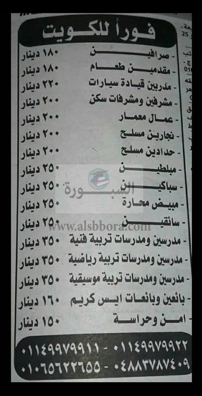 اعلنت دولة الكويت عن حاجتها الى عدد من الوظائف برواتب تبدا من 150 دينار كويتى حتى 350 دينار كويتى