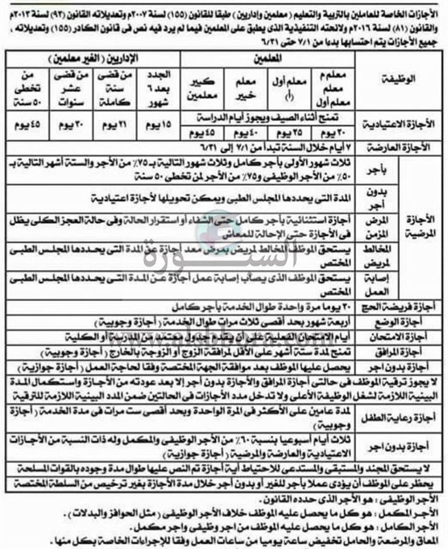 بالمستندات| ننشر جميع الاجازات الجديدة للمعلمين والاداريين بالتعليم 2019/2018