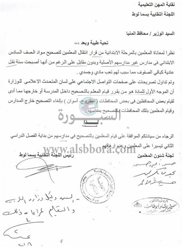 جاء ذلك عقب تقدم عمرو شحاتة وكيل وزارة التربية والتعليم بسوهاج، بمذكرة عرض للسيد الدكتور محافظ سوهاج، طالب فيها أن تتم أعمال تقدير ورصد الدرجات الخاصة بالصف السادس الابتدائي باعتباره سنة نقل عادية مثل باقي الصفوف و بمعرفة نفس معلمي المدرسة، بدلاً من تصحيح أوراق الصف السادس بالتبادل بين المدارس ، وهو ما سبب العديد من المشاكل.