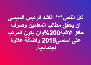 المعلمون يطالبون الرئيس بصرف حافز الاثابة 200%.. والراتب على اساسى 2018.. واضافة علاوة اجتماعية