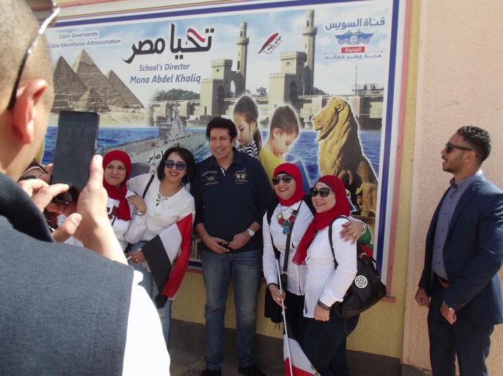 بالصور.. هانى رمزى يدلى بصوته فى مدرسة صلاح الدين بالتجمع الخامس