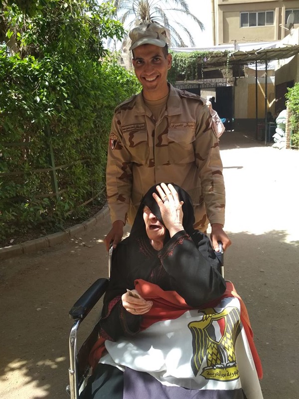 حضرت سيدة مسنة الى احدى لجان القناطر الخيرية الانتخابية للادلاء بصوتها فى الانتخابات الرئاسية والمقرر لها من اليوم حتى الاربعاء 28 مارس