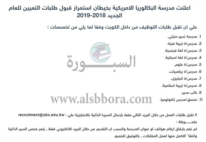 تعلن مدارس البكالوريا الكويتية عن وظائف جديدة للمعلمين والمعلمات المصريين في 14 تخصص وذلك وفقا لنص الإعلان التالي:-