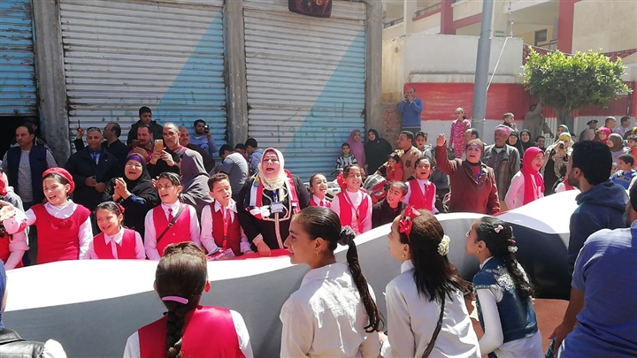 قام عدد من طلاب مدرسة فهيمة متولى بمدينة السرو فى محافظة دمياط، بتنظيم مسيرة بالعلم المصرى من أمام مقر المدرسة لاستقبال الناخبين فى الانتخابات الرئاسية.