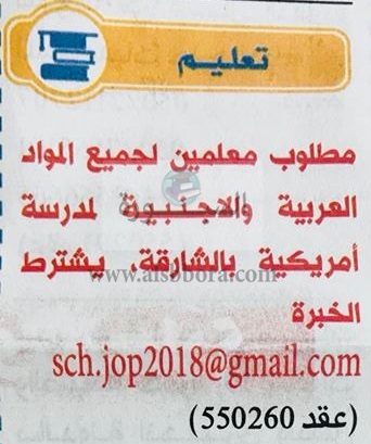 تعلن مدارس الشارقة الإماراتية عن وظائف جديدة للمعلمين والمعلمات في جميع المواد وذلك وفقا لنص الإعلان التالي:-