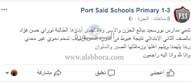 سادت حاله من القلق والغضب أولياء أمور مدرسة"بورسعيد الابتدائية" بالزمالك، عندما أعلنت إدارة المدرسة وفاة طالبة بـ"تسمم دموي غير معدي"، عبر صفحتها الرسمية على "فيس بوك".