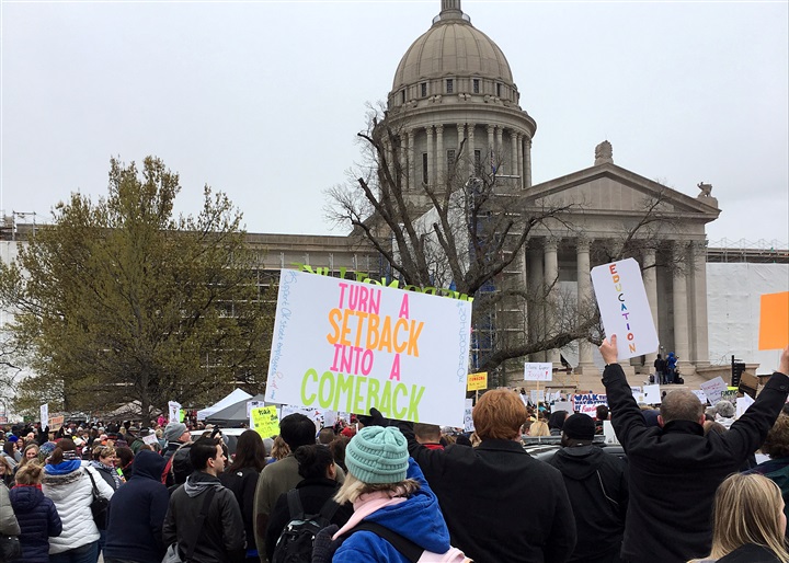 ووافقت الهيئة التشريعية فى أوكلاهوما ، التى يسيطر عليها الجمهوريون ، الأسبوع الماضى على أول زيادة كبيرة للضرائب فى الولاية خلال ربع قرن للمساعدة فى تمويل الزيادة فى الأجور للمدرسين ، على أمل تجنب الإضراب مع حزمة إيرادات بقيمة 450 مليون دولار.